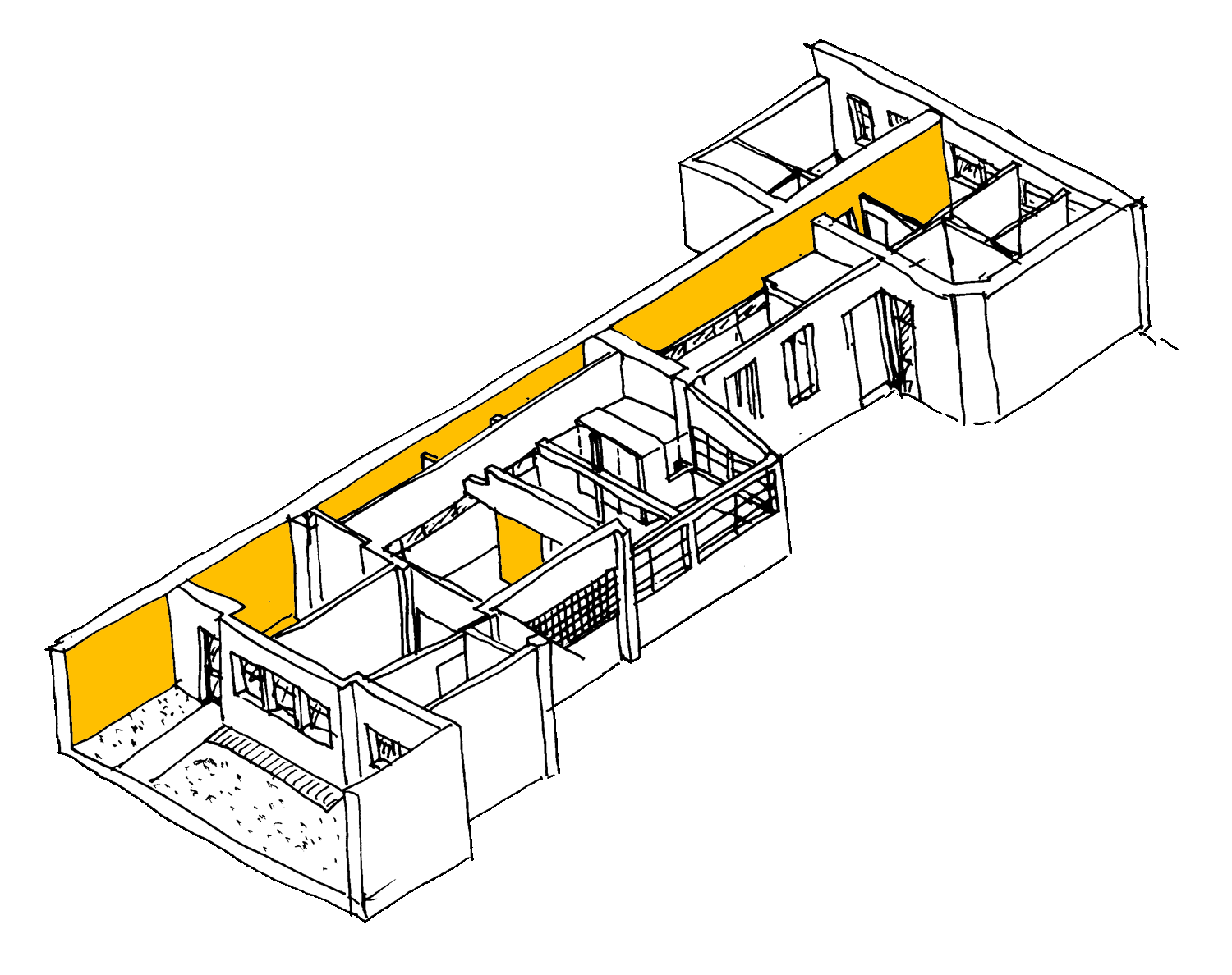Une recherche importante sur la pénétration de la lumière naturelle a été réalisée, que ce soit par captation de la lumière par des châssis vitrés dans la toiture ou par les relations qui existent avec les différentes cours arborées contigües au projet.