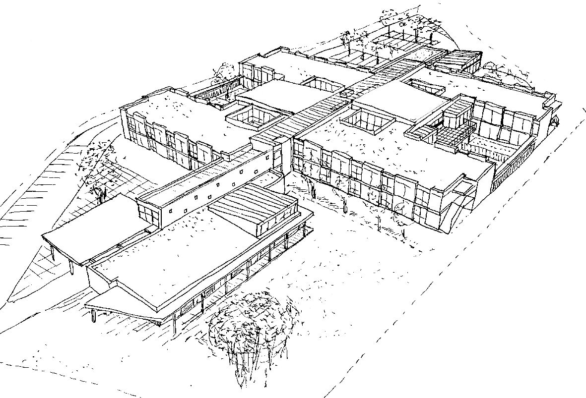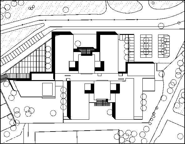 • les espaces extérieurs sont maîtrisés, révélés par des bâtiments espacés, ouverts qui laissent pénétrer les espaces extérieurs au cœur du bâtiment