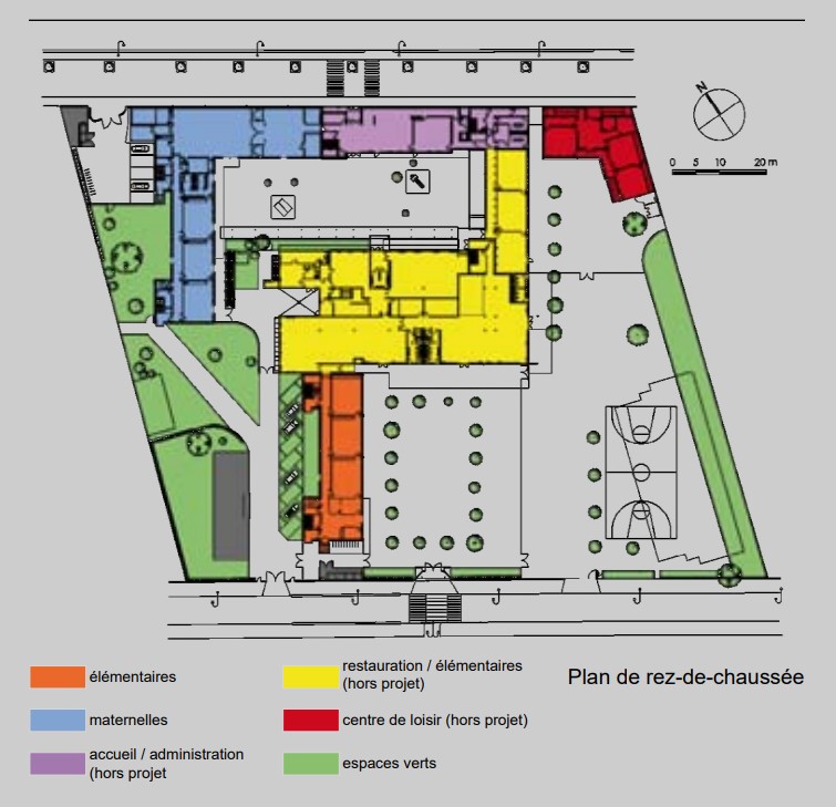 Le projet concerne la 3ème phase d’une restructuration globale du groupe scolaire. Celle-ci s’étend à 3 bâtiments regroupant 20 classes maternelles et élémentaires ainsi que des parties communes, et comprend également la requalification des espaces extérieurs et des schémas de distribution des différents flux.