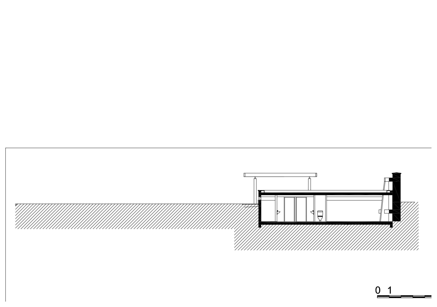 • le volume des sanitaires est couvert partiellement d’un bardage bois