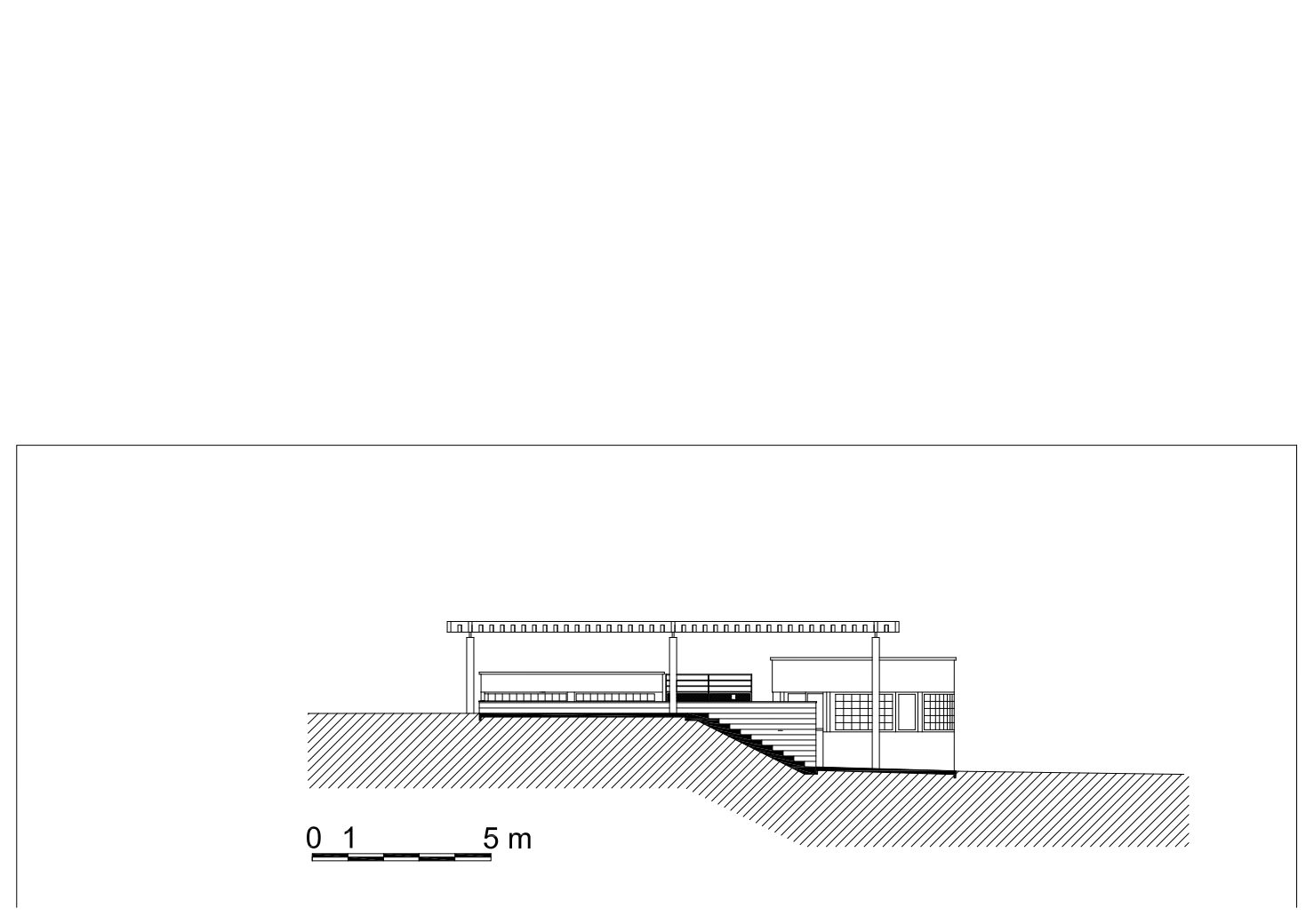 • un parallélépipède, abritant l’accès aux locaux techniques et les sanitaires, permet de traiter le dénivelé