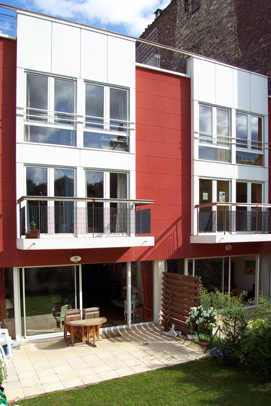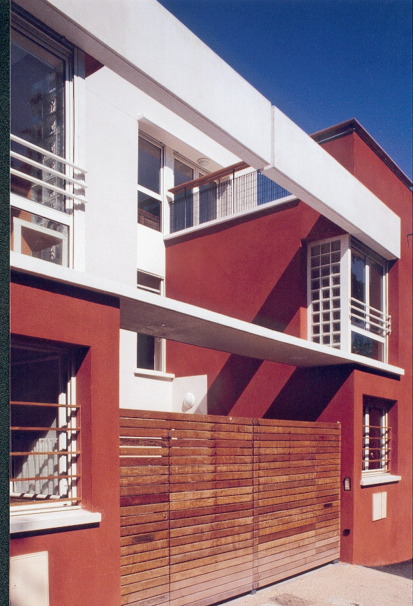 Les deux maisons (R+2), inscrites dans un terrain de 11 mètres de large sont construites en mitoyenneté.