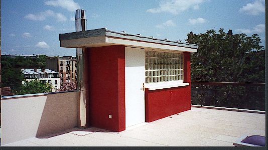 Deux terrasses par logement sont accessibles, l’une à R+1 côté rue orientée au sud, l’autre en toiture donne à voir un grand jardin public au nord et une vue sur Paris et la Tour Eiffel au nord-est.