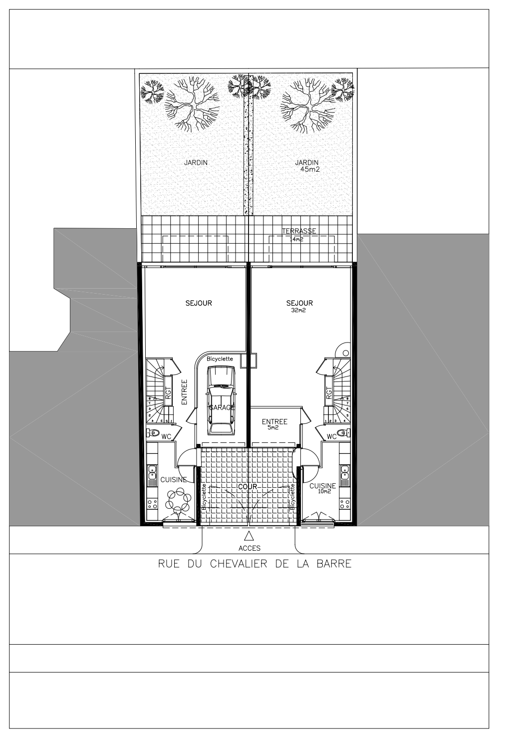PROGRAMME : Construction de deux maisons de ville, 6 pièces, jardin et garage à RDC.